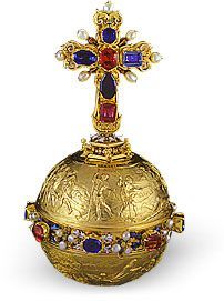 Kromě žezla drží nový král v ruce také královské jablko, které pochází nejspíše ze stejné dílny, jako žezlo. Vyrobeno je z osmnáctikarátového zlata. V průměru dosahuje 11,9 centimetrů a vysoké je 9,8. Společně s křížem na vrcholu dosahuje výšky 22 centimetrů a váhy 780 gramů. Celý tento korunovační doplněk zkrášluje 8 safírů, 6 spinelů a 31 perel a překrásný pohled zakončují tepané reliéfy.
