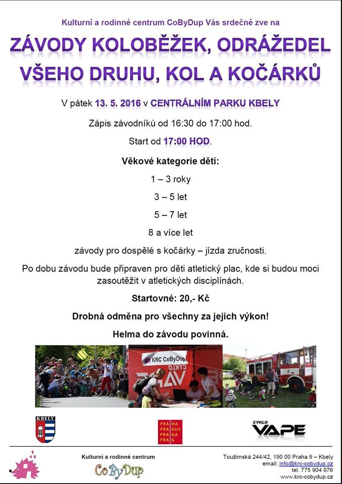 Srdečně vás zveme na letošní závody koloběžek, odrážedel všeho druhu, kol a kočárků.